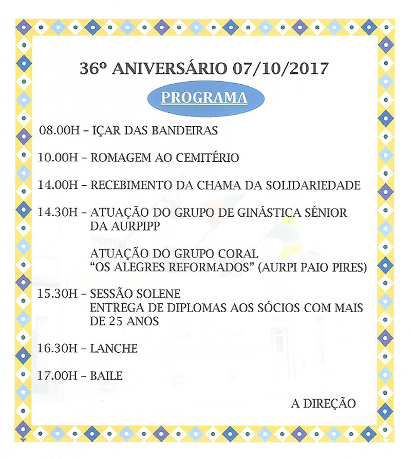26 Set 2017 Sticky Post By Dep. Comunicação Posted in Reflexões Permalink 36º Aniversário 07 de Outubro de 2017 Sticky Post By Dep. Comunicação On 26 Setembro, 2017 36º Aniversário 07 de Outubro de 2017 Setembro 28th, 2017Dep. Comunicação
